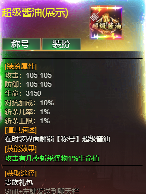 1. vip礼包:游戏内贵族分为v1-12,不充值打怪也是可以获取贵族点数进行提升。0充玩家—建议大家是有能力购买到v5获取【超级酱油称号】,有了称号之后更容易打BOSS