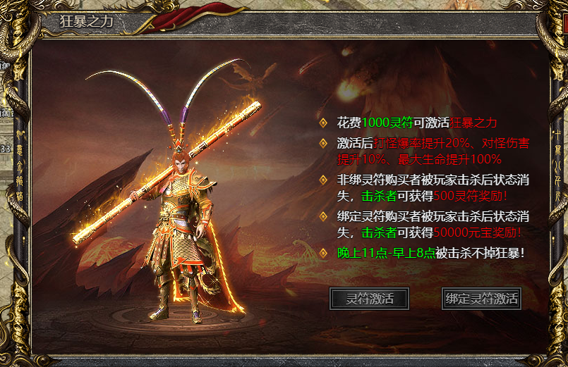 玩家花费1000灵符,可激活狂暴之力。