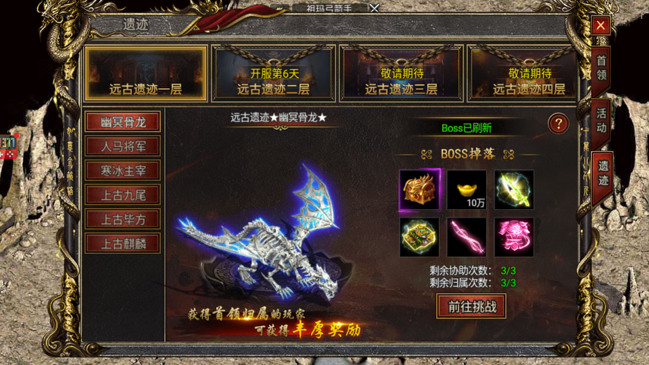 3、协助规则:同行会的人获得BOSS归属奖励时,自己将获得协助奖励。
