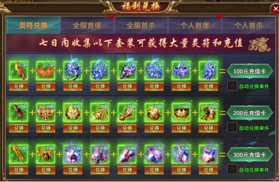 最后就是我们的灵符兑换》其实就是《套装兑换》让你更换下来的装备发挥最大价值。