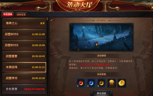 每日21:00,精彩纷呈的冰渊战场阵营战将准时开始报名!