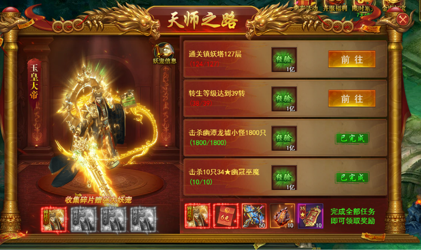 妖宠:完成天师之路可以收集妖宠,妖宠自带高属性和强力技能。