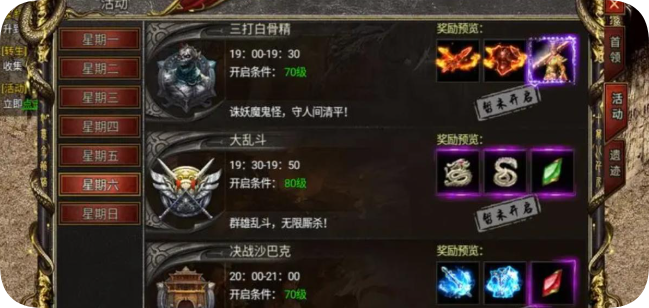 活动奖励分为达标奖励和排名奖励,积分越高,获得的奖励越丰厚。个人积分达到指定点数,可以领取相应的奖励,有大量的元宝、随机宝玉盒等奖励。排名奖励按照个人总积分,统计进入排行榜,排行榜前100名勇士,可以获得对应的丰厚奖励,排名越前奖励越丰厚,奖励有生肖宝箱、生肖碎片、随机宝玉盒、大量元宝等丰厚奖励。